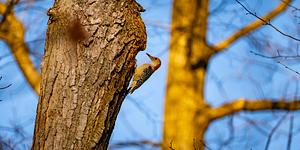 You know that light...that perfect, warm glow about an hour before sunset. I was walking through Stouffville when I heard that unmistakable drumming. It took me a minute to spot this Red-bellied Woodpecker, so perfectly camouflaged against the bark. It was completely absorbed, peeking into a hollow it was working on. The warm light filtering through the canopy lit up the scene perfectly. It felt less like I was a photographer and more like a quiet observer of a master at work.